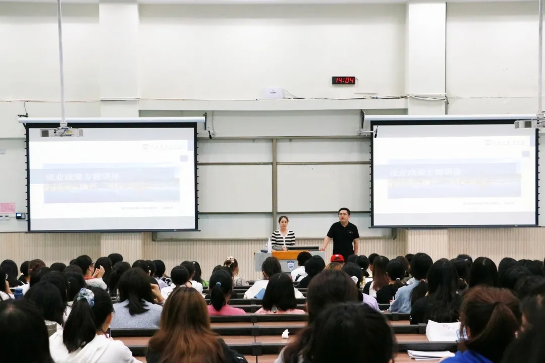 讲座上,赵怡宁首先为同学们讲解了广义的就业与狭义的就业之间的区别。她讲到,狭义的就业就是“找工作”,而广义的就业还包含“考研、出国深造、争取第二学士学位”等方式。接下来,赵怡宁重点为同学们讲解了有关创业、“西部计划”、特岗教师计划、“三支一扶“、事业单位D类、教师招聘考试等就业方式的相关政策以及同学们须大学期间为就业所做的准备。最后,赵老师希望同学们能打开思维,敢想敢做,为了实现目标完善自己,在未来的大学生活中逐步提升自己的语言表达、沟通交流和逻辑思维能力,并积极参与校内校外实践活动,培养良好的心态,安排好每日的时间,掌握合适的学习方法。