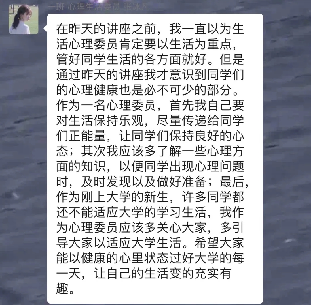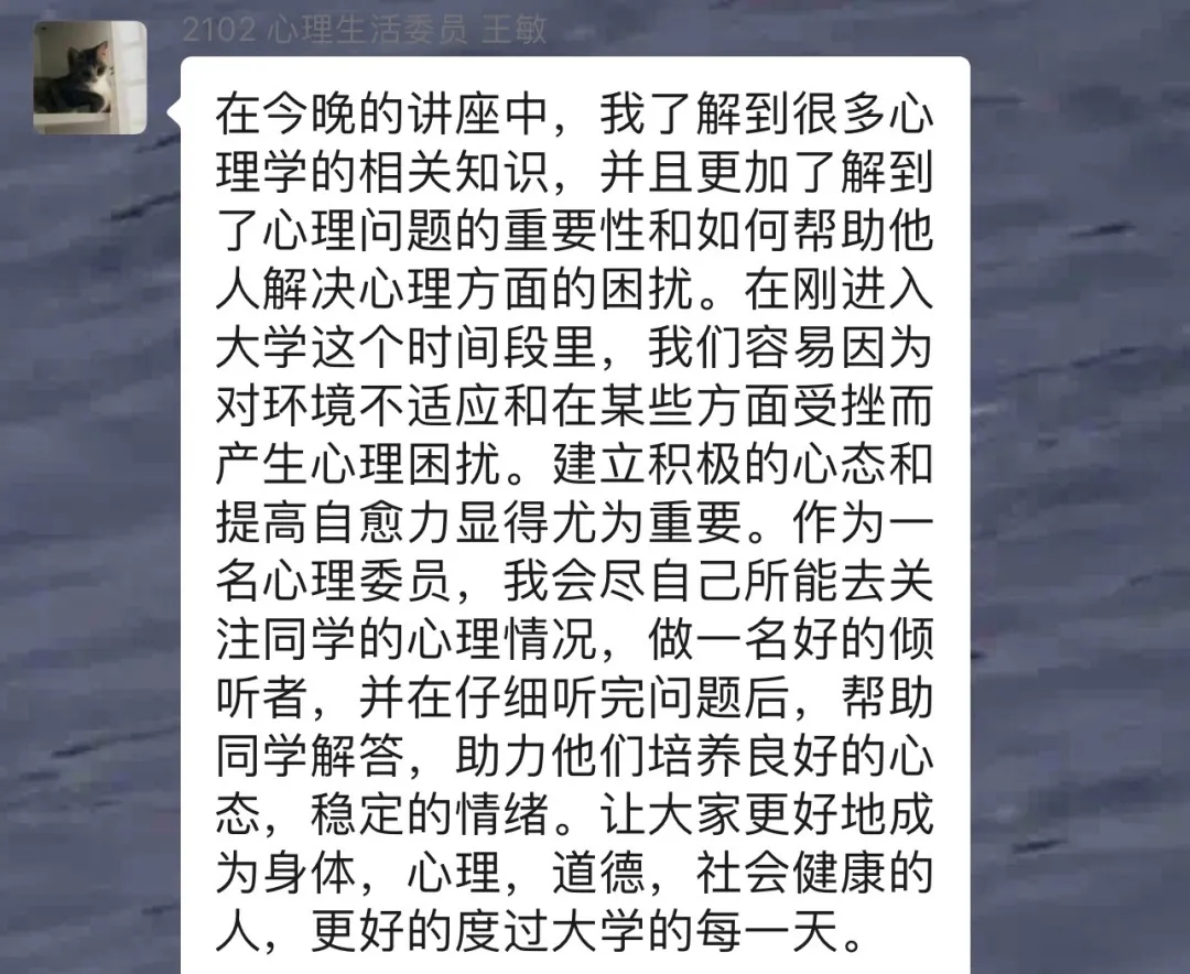 (文案:学工部学生心理健康教育与咨询中心 白蓉蓉;图片:21级心理委员;审核:白蓉蓉)