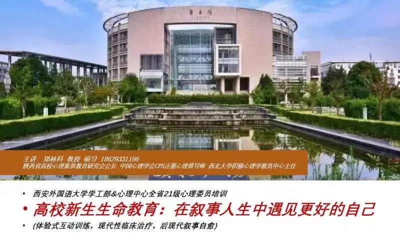 9月27日19点,我校学工部学生心理健康教育与咨询中心特邀陕西省高校心理研究会会长郑林科教授,通过瞩目会议室平台,为我校2021级心理委员带来了一场精彩的讲座——大学新生入学生命教育:在叙事人生中遇见更好的自我。学工部部长丁铭老师主持了此次讲座。