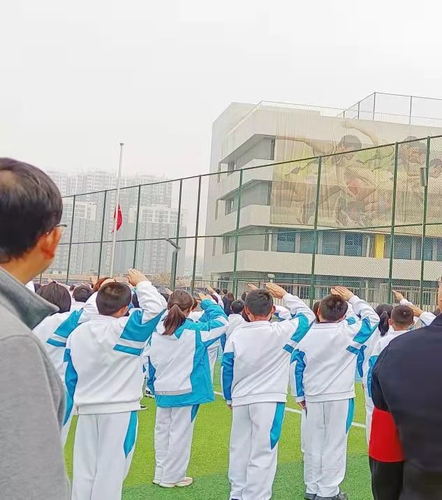 到了每周一早上的升国旗时间。高新三初的学生们带着庄严,带着敬意以及满满的生为中国人的自豪,等待观看神圣的升旗仪式。伴随着激昂的国歌,五星红旗在大家的注目礼下冉冉升起。随风飘起的不只是五星红旗,还有三初学子心中共同的信仰和追求。