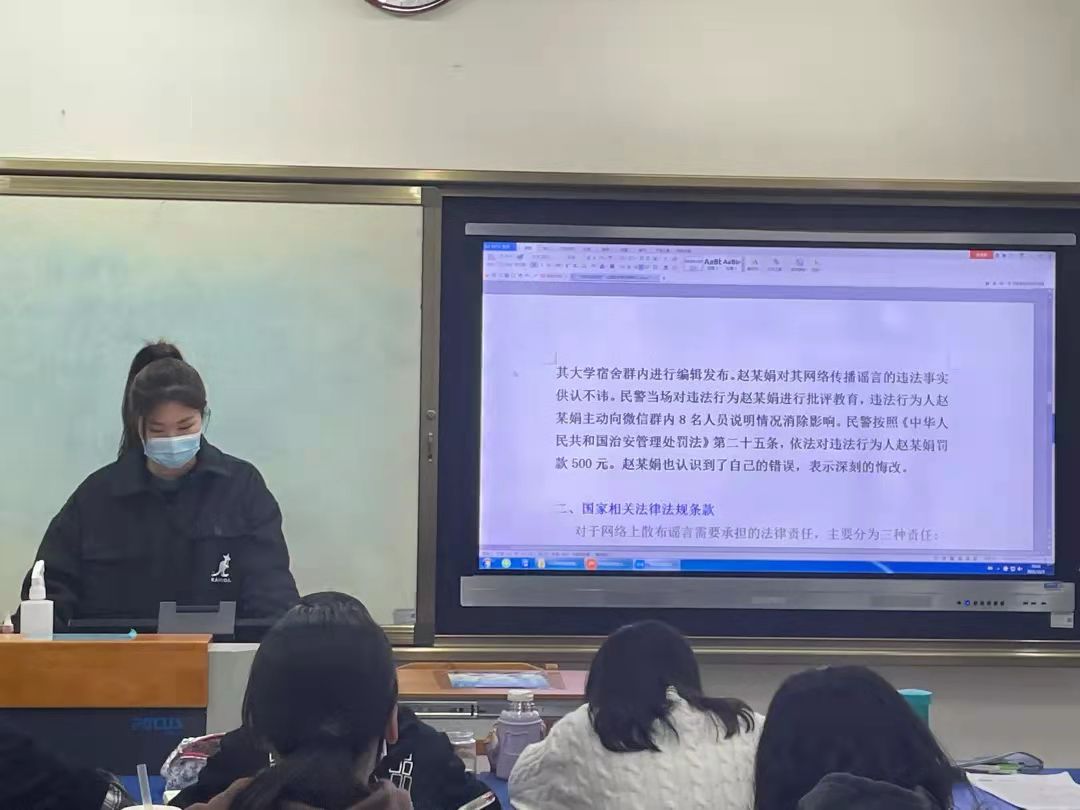 网络安全始于心,安全网络践于行。我们现在的生活和网络息息相关,浏览器、社交平台等等都有可能出现隐私泄露。轻则接到骚扰电话,重则遭受财产损失,甚至威胁到人身安全。班长引导大家分析学习了几则案例,让大家明白了网络言行的重要性:不造谣传谣、要尊重他人隐私,在网络上也要为自己的言行负责。