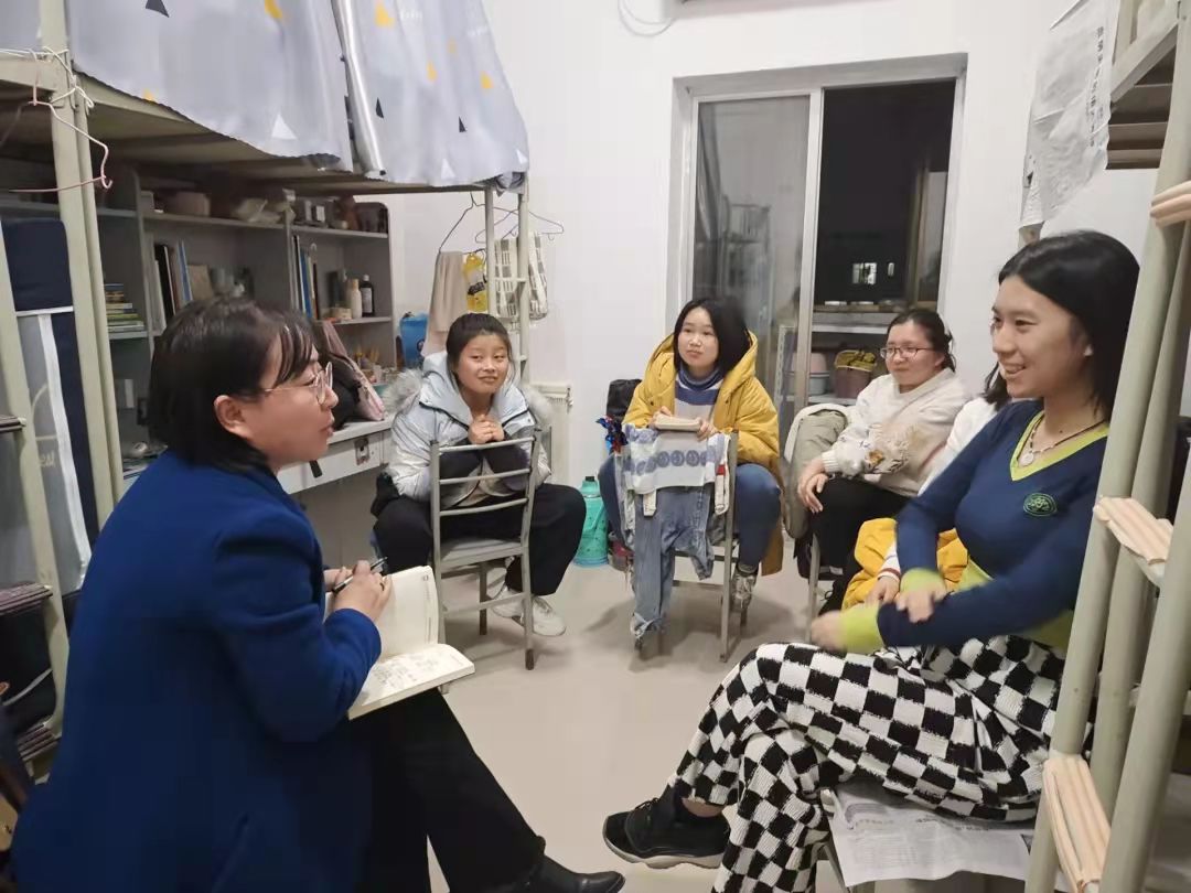 党委副书记刘一静在辅导员晁梦雨的陪同下,于11月24日晚来到6C644进行本学期的宿舍走访活动。