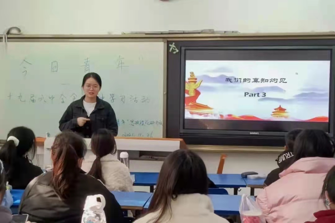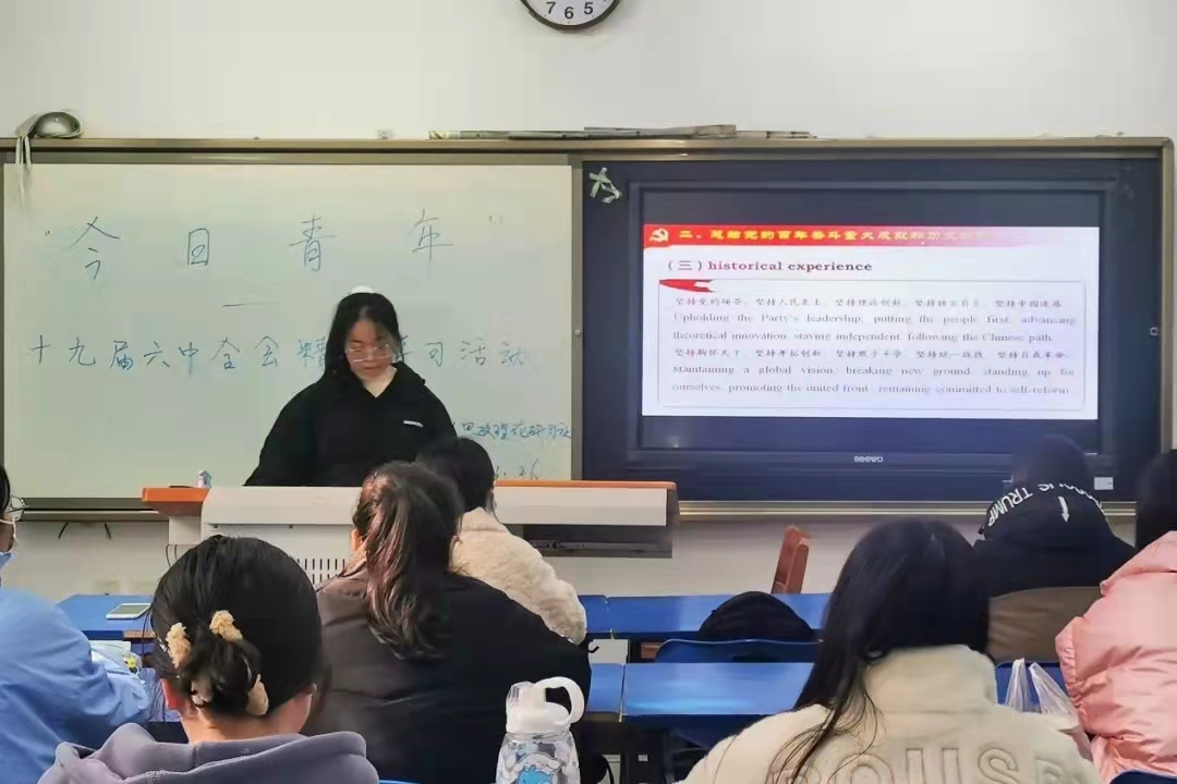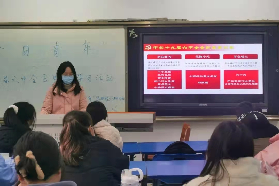 “今日青年”思政理论研习社团在JD119举办以“学习中国共产党第十九届中央委员会第六次全体会议”的主题学习活动,社团全体成员参加,本次活动由社团负责人韩昊媛主持。