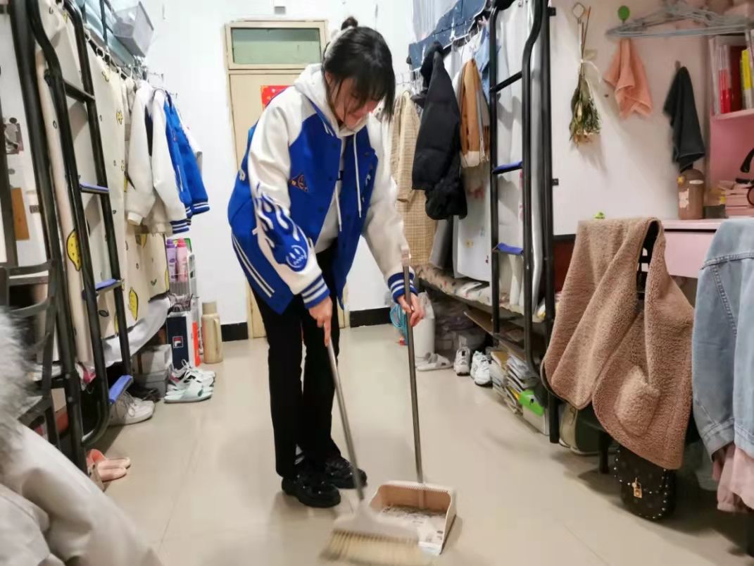 在做好个人防护的前提下,各位同学分工合作,密切配合。发扬不怕脏不怕累的精神,对宿舍的角角落落都进行了认真打扫的清理:有的扫地、有的拖地、有的擦桌子……整个过程中,随处可见大家劳动的身影,经过一番努力,整个宿舍焕然一新。宿舍是我们共同的生活空间,干净整洁的环境是每个成员的期望,这将有助于我们的身体健康,让我们以最佳的精神状态投入到学习中去。