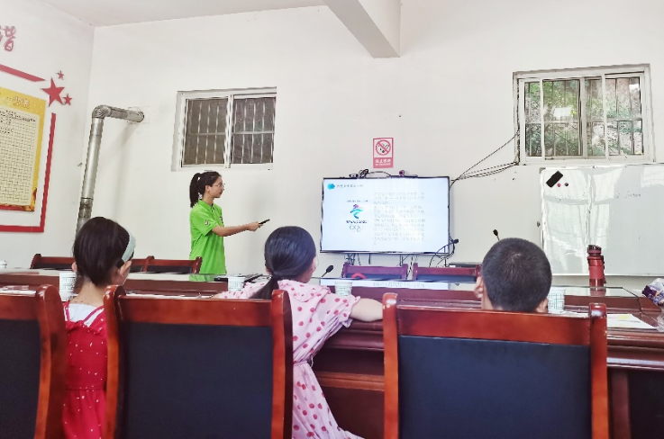 本次支教活动以当地村委会为场地资源,利用破冰游戏激活课堂,7月20日至7月26日,团队成员带领孩子们了解2022年北京冬奥会的全称、主题口号等基本内容,循序渐进、由浅入深地向孩子们讲述了历届冬奥会的历史、特色冬奥赛事项目、奥运五环各色的象征意义、优秀青年榜样谷爱凌的赛场风采与成长历程,又通过讲解冬奥会会徽“冬梦”、体育图标、象征“together”的同心圆奖牌、独特的火种灯设计、二十四节气倒计时中各个节气的特点以及闭幕式中“折柳寄情”的寓意,让孩子们感受冬奥会场中的中华传统艺术元素。