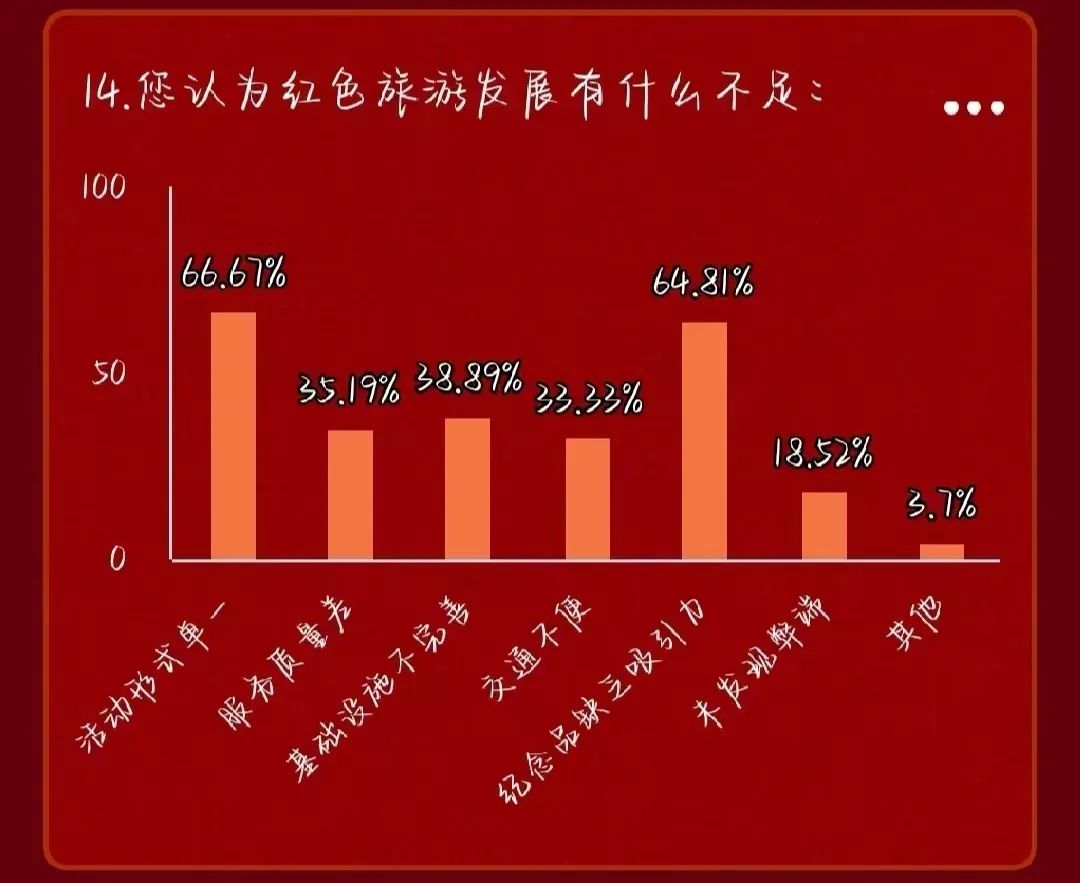 调查结果显示延安红色旅游目前的问题是人们主动了解意愿低,旅游资源表现形式单一以及基础设施较差。