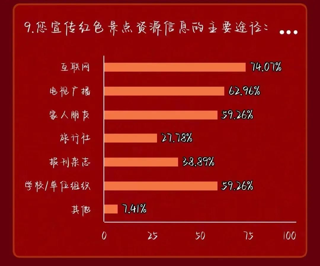 (2)善于运用新媒体。大力发展“互联网+”,增加宣传力度,运用多种互联网新兴平台加强红色景点资源的推广,让红色文化传播的更广泛,更全面;