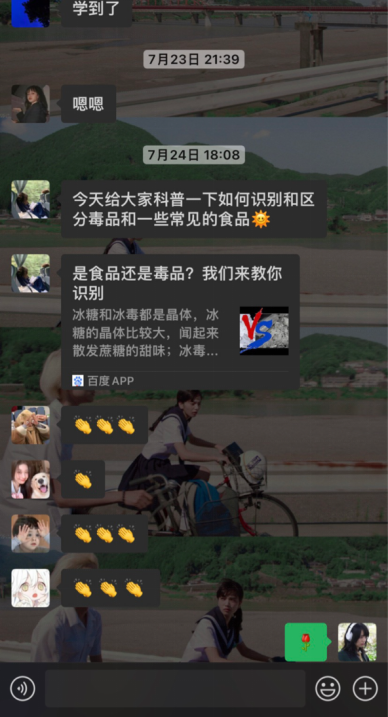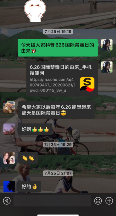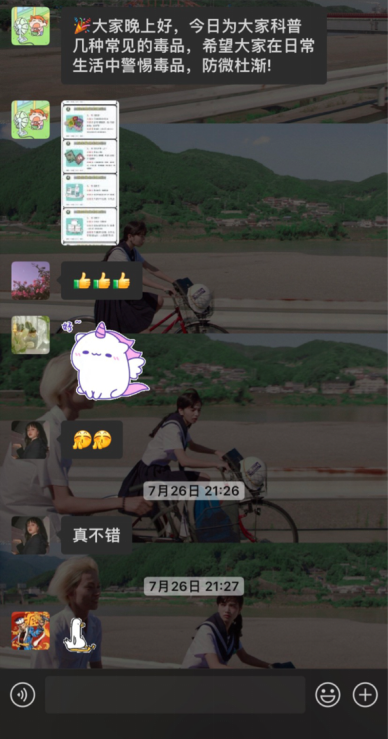 在接下来的几天中,陆续有新的成员加入我们的宣讲群,同时我们也每天不定时地为大家推送防毒禁毒的小知识,获得了广泛的好评。