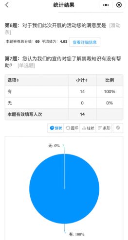 讲座过后,我们也即将迎来这次活动的尾声,我们制作并发布了了一份问卷,其中包括最基础的禁毒问答题,以及对我们活动的评价及建议。群众对我们的活动普遍给出了积极的评价。