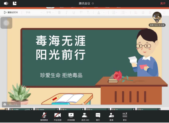 此外,在7月27日这一天,我们进行了一场线上的讲座,主要内容是总结此次活动,再次向大家重申毒品的危害及识别常见的毒品,以确保我们的宣传达到预期效果,在讲座中,大家认真参与,积极发言,并表示收获颇多。