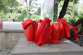 “红心向阳—党史学习教育团”在王家坪革命旧址开展了红色景点调研活动,并且采访了广大游客对于延安开展红色文化宣传的看法并进行了总结,走进社区面向群众进行宣讲。