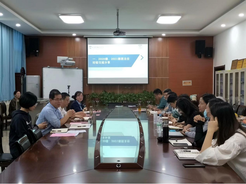 会议第一项,2020级、2021级班主任做经验交流分享。2020级班主任王嘉铭分享了自己的带班经验和心得,提出“法宝”学分奖励制,可以从班级建设和情怀培养方面管理班级,以此增强班级的凝聚力,让学生们更好的在大学中学习成长。2020级班主任冯东分享自己的教学经历,总结“七点建议”鼓励班主任积极参加班级主题班会,“因班制宜”发现每一位同学的特长。2020级班主任任凤芹交流班主任经验,通过谈心会拉近和学生的关系,多分享书籍给同学们“生活解惑、学业解忧”。2021级班主任张晓文分享和学生的谈心感受和心得,鼓励学生们多阅读书籍,写作,为未来的学习生活打下基础。