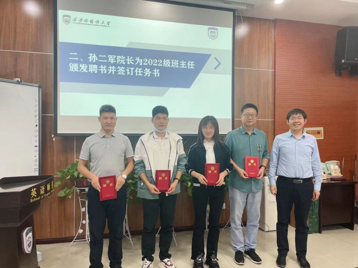 会议第二项,孙二军院长为2022级班主任颁发聘书并签订任务书。孙二军希望2022级班主任充分汲取经验,发挥自身专业优势,带领学生把班级建设的越来越好。