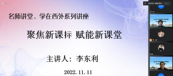 第三场讲座主讲人是陕西省灞桥教师进修学校教研员李东利老师。她围绕“聚焦新课堂,赋能新目标”进行讲座分享。李老师从2022年课程方案的新变化,新课标在课程性质、理念、目标和内容的具体要求,新教师在教学实践中存在的误区和自己在小学数学教学中的个案分析等方面进行了内容丰富的经验分享。李老师强调课堂要以学生为本,以核心素养为导向设计教学内容,组织教学。李老师的讲座信息量大,理论结合实际,给同学们提供了基础教育新动态的丰富知识和理论指导,问题剖析和个案分析更为学生提供生动的学习样本,同学们在讲座中收获颇丰。