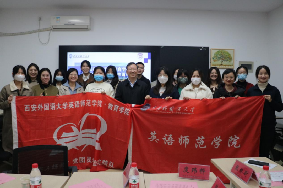 英语(师范)专业2002班在思政进公寓党员组织工作站举办学生代表座谈会,副校长(主持行政工作)王启龙出席会议并与学生深入座谈。英语师范学院•鸭奈飞