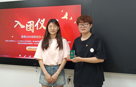 入团仪式是每一位团员成长中的重要里程碑,也是一名青年加入共青团的神圣标志。2204班团支书朱迦颐为新发展团员张彦志同学佩戴团徽并颁发团员证。现场共青团员们集体宣誓、共唱团歌,感受铮铮誓言中的青年担当与责任,立志做一名胸怀大志、脚踏实地的新时代奋斗青年。2204班班长段夕聪作为老团员代表发言,他说:我们要时刻牢记自己是一名共青团员,自己的一言一行要体现一名团员的先进性,要努力进取,奋发向上,真正从思想上加入到团组织中去,以实现自己的入团誓言。