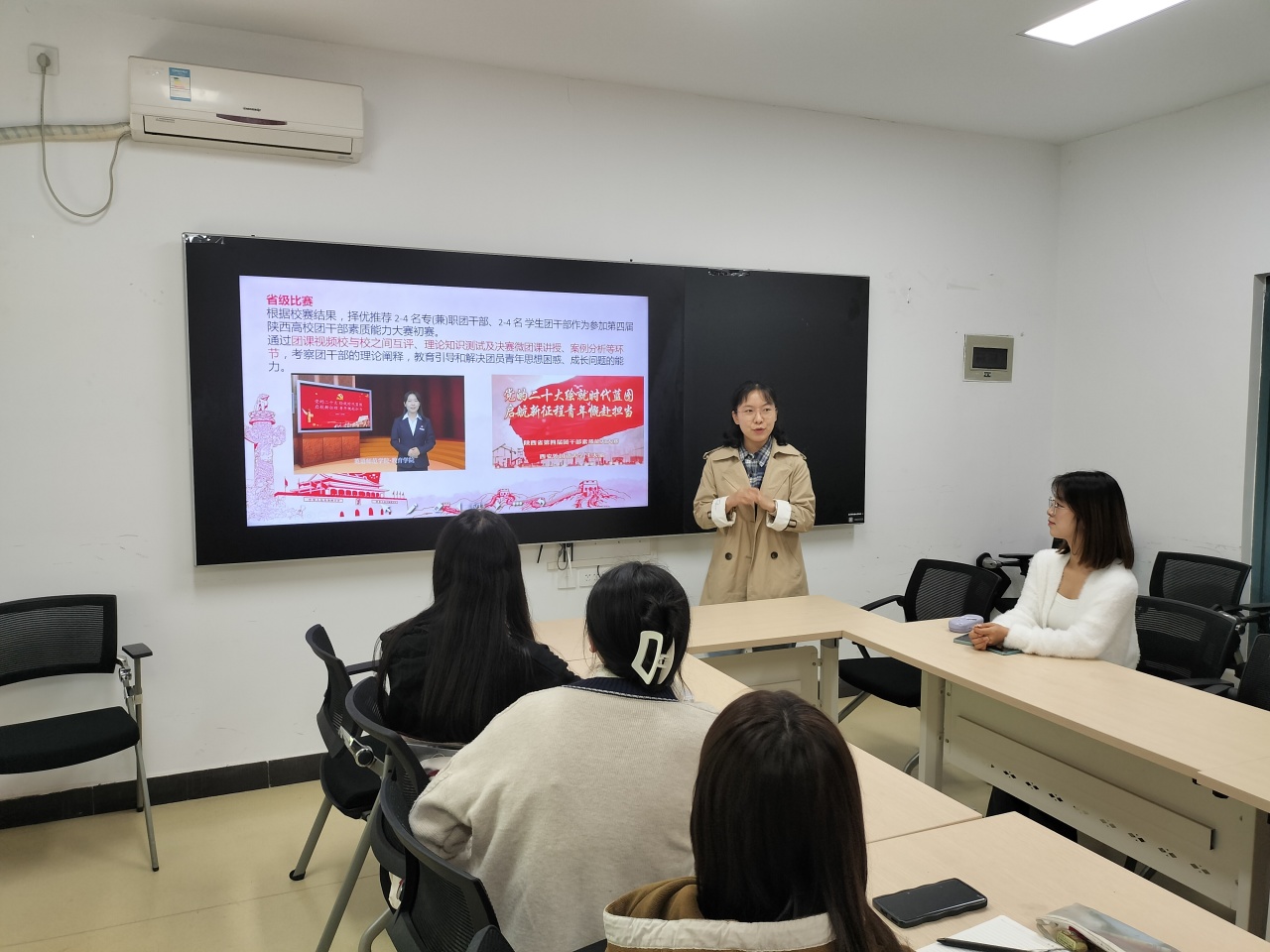2021级刘瑜和王天瑜两位同学,她们分别以“筑基提能强本领,学以致用促提升——如何做一名合格的共青团干部”和“追风赶月莫停留,平芜尽处是春山——团干部素质能力大赛参赛心得分享”为题,与学生们展开分享交流。2022级辅导员李瑞静与各班团支书和组织委员共同参会。