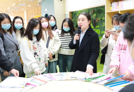 参观完校园,张小英校长作个人分享—“爱你所热爱的”。热爱,可抵岁月漫长。在张校长长达三十年的教学生涯中,热爱就如一盏明灯,可抵挡艰难险阻,可砥砺前行。既然选择了教育事业,就去热爱它。教育是奉献爱的事业,教师基本的职责是教书育人,对学生的培养方式有很多,但不论何种形式都贯穿着对学生的爱,对这份职业的热爱。只有内心充满热爱,才会在平凡的教学生涯中感受到幸福快乐。伟大的教育家陶行知先生讲“爱满天下”,教师就是爱的使者,陪伴引导学生成长。