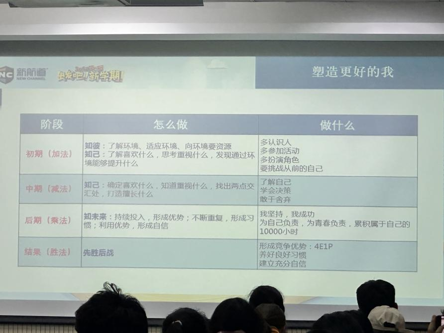 讲座主要从四个方面进行展开。首先,在杨明的引导下,同学们了解了“在新时代背景下,大学生如何定位自我”的相关知识。通过老师的具体讲解,同学们知道了自己所处的阶段,明确了自己的定位。其次,杨明还帮助各位同学们了解了自己的心理特征,通过各方面的解读,让同学们在多个维度上了解了自己的心理模式,对自我有了更好的界定。杨明生动幽默的语言与互动赢得了阵阵掌声。在自我定位、心理了解结束之后,杨明开始带领同学们认清自己的兴趣与特长,为同学们打开职业规划的蓝图。最后,杨明对这场讲座进行了升华,开始讲述关于“未来的求职方向和职业发展的规划”的相关内容。杨明总结了“加、减、乘、除”四字法,并向同学们阐述了更为具体的职业规划方向与方法,让同学们意识到职业规划的重要性与紧迫性。讲座结束后,杨明还与同学们进行了问答互动与交流,进一步加强了同学们对讲座内容的理解与职业规划的重视。