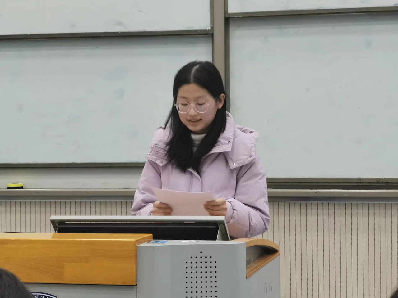 辅导员李瑞静对优秀班集体及优秀学生代表的经验分享给予了高度的肯定。她指出,每位优秀学生都有各自的亮点,都是值得学习的榜样,正是每一位同学在自己的岗位上尽职尽责,每一位同学的支持拥护才使得班级团结凝聚,年级工作有序开展。李老师讲到,大学四年要目标明确、脚踏实地,根据个人实际及时制定职业规划,积极参与到校内外各项学习和实践中,在踏实的学习中提高专业能力,在不断的实践中提升综合素养,大学四年朝着德智体美劳全发展的优秀大学生而不懈奋斗。