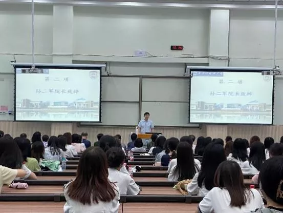 冯东副院长从校史回顾、鸭奈飞概况 、专业设置等方面向与会师生们系统介绍了学校、学院的各项情况,并对2021级新生的到来表示欢迎。