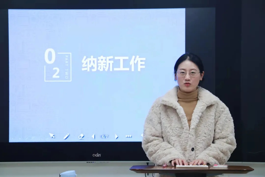 接着,进行了纳新工作。各位面试的同学依次上台,进行自我介绍。自我介绍结束后,老师就工作设想、活动的统筹等方面进行了简单的提问。