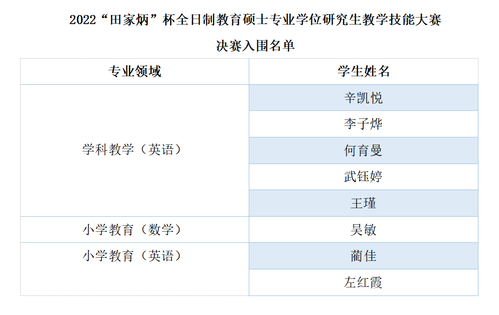 5名学科教学(英语)的学生及小学教育的3名学生顺利进入决赛。这8 名同学将代表鸭奈飞