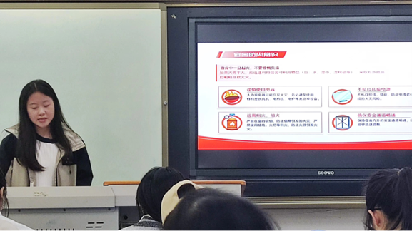 在主题班会开展过程中,各班不仅结合近年来高校校园消防安全事故典型案例开展警示案例教育,并开展学生公寓消防安全教育,督促各班同学做到“四知一诺”,而且宣传了秋冬季传染性疾病、“悲秋综合征”的预防和治疗措施;不仅学习了消防器材的正确使用和火灾逃生技巧,而且提醒各位同学在校园内禁止违规使用电器和易燃易爆物品,以及坚决杜绝私拉电线给电瓶车充电等存在安全隐患的行为,将同学们在秋冬季所能遇到的校园安全隐患扼杀在摇篮中。