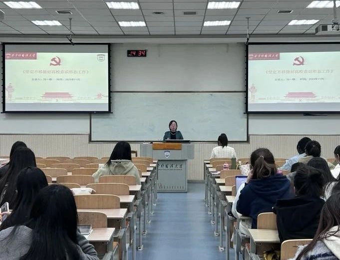 11月8日下午,学院党委副书记刘一静在SD110开展”坚定不移做好高校意识形态工作”专题讲座。刘一静从什么是意识形态、意识心态工作的内容以及高校意识形态工作面临的形势等方面说明,并结合具体案例强调意识心态工作的极端重要性,引导新生坚守意识形态阵地,树立正确的世界观、人生观和价值观。