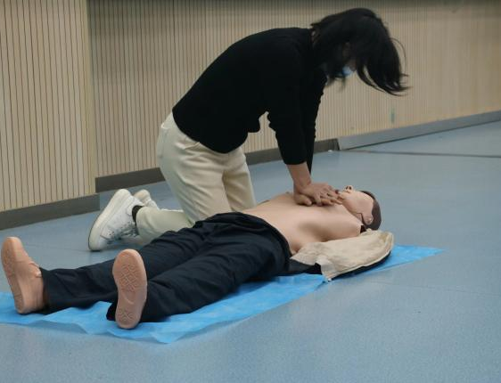汪瑛强调学生健康教育的重要性,让同学们亲身实践遇到紧急情况的救护方法。