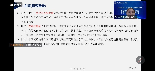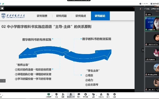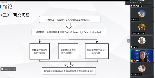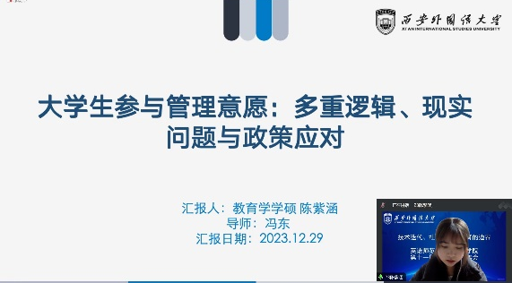 主题汇报阶段结束后,上午10时30分于线上展开五个分论坛的学术汇报。每个分论坛分别由13至15名学生做学术汇报,两名指导老师点评。各个论坛分别围绕“技术迭代与人才培养研究”、“课程教材建设与教育理论分析”、“教育政策与教育制度审视”、“社会裂变下的教育与文化”、“教师队伍建设与专业发展”五个主题展开。在这次学术会议中,老师们的指导和建议为学生们提供了宝贵的学术资源和成长机会。通过与老师的交流和互动,同学们不仅提升了自身的学术素养和综合能力,还建立了良好的学术关系和合作氛围。