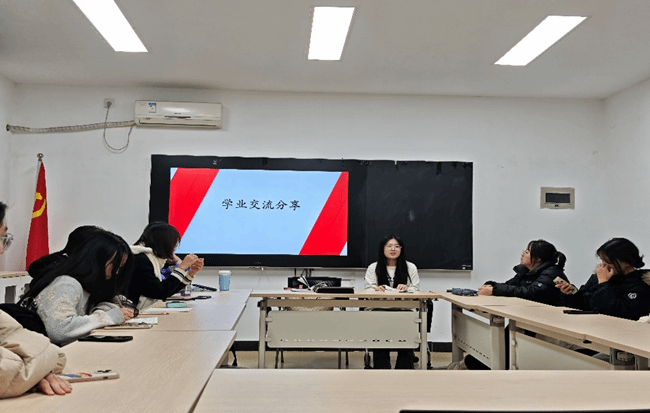 2023级6班学习委员康靖敏进行学业交流分享。本次分享会由“党员示范岗”成员,学生第二党支部预备党员姜雨静主持,其对接服务宿舍5A418、419宿舍全体成员参会。
