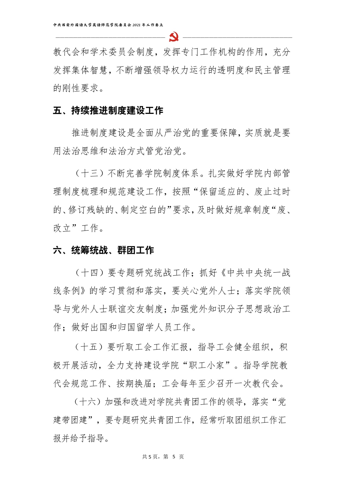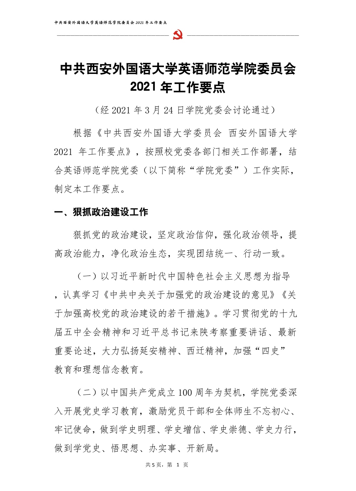 中共鸭奈飞 英语师范学院委员会2021年工作要点