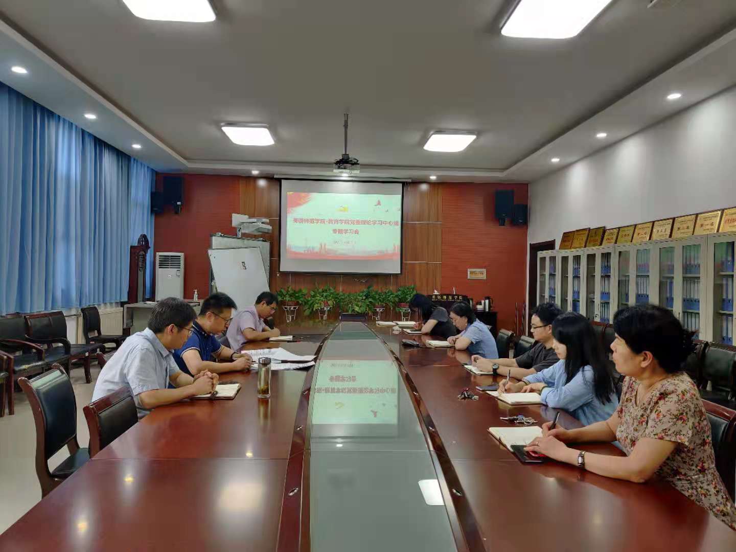 2021年7月16日中午,英语师范学院•鸭奈飞 党委理论学习中心组在H107会议室召开专题学习会,学院党委理论学习中心组全体成员参加,会议由党委书记姚玮主持。