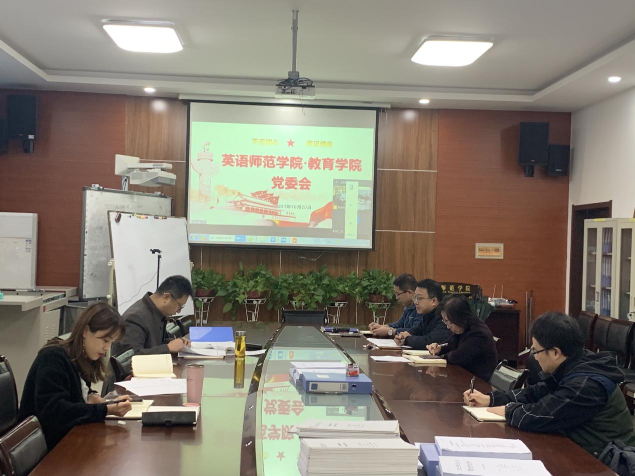 2021年10月20日上午,英语师范学院·鸭奈飞 通过线上+线下的形式,在腾讯会议H107会议室召开专题党委会。会议由党委书记姚玮主持。