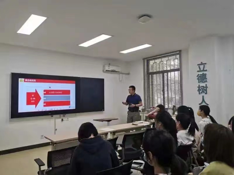 于2022年4月27日中午在思政进公寓学工工作站开展学生干部讲党课活动。本次党课由党委书记姚玮担任主讲人。院长孙二军、党委副书记刘一静、学生党支部书记王鑫、王封青、薛璐以及学生党员代表参加活动。