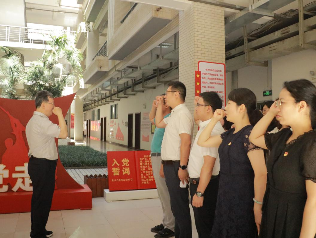 为强化党员政治身份认同,让老党员重温入党誓词的庄严承诺和坚定决心,让新党员感受入党的庄重性和严肃性,大力营造爱党信党跟党走的浓厚氛围,学院党委组织学院师生党员代表和本次新发展党员代表,在王校长的带领下,共同在党史学习教育专区面对党旗庄严宣誓,一声声誓言铿锵有力,把大家带回那段峥嵘热血的青葱岁月,激励党员们不忘初心、开拓进取,以更加饱满的热情投身各自工作岗位。学生第四党支部唐小淏代表新发展党员发言,她讲到,自己出生在一个党员家庭,从小沐浴着党的阳光,心灵深处早已理下了共产主义理念。作为当代青年,要更加认识到新时代青年身上的责任,作为党员不怕苦累、乐于奉献,不负青春、不负韶华,努力成长为堪当民族复兴大任的时代新人。