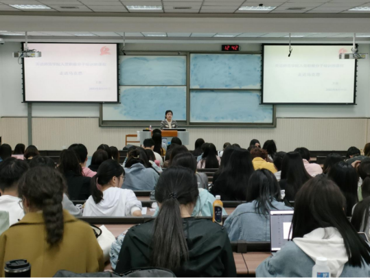 党委副书记刘一静以习近平新时代中国特色社会主义思想为题,阐述了习近平新时代中国特色社会主义思想对于党和国家发展的重要性。同时,党委副书记刘一静也向入党积极分子娓娓道来从毛泽东思想到习近平新时代中国特色社会主义思想的形成和马克思主义中国化漫长征途。最后她指出希望入党积极分子能够提高思想认识,进一步增强参加培训的思想自觉,自觉坚定理想信念,强化党性修养,全面提高自身的素质能力。坚持理论联系实际,保持优良学风,不断加深对党的认识,提高自身的理论修养,真正做到“以理论武装头脑,认识指导实践”。