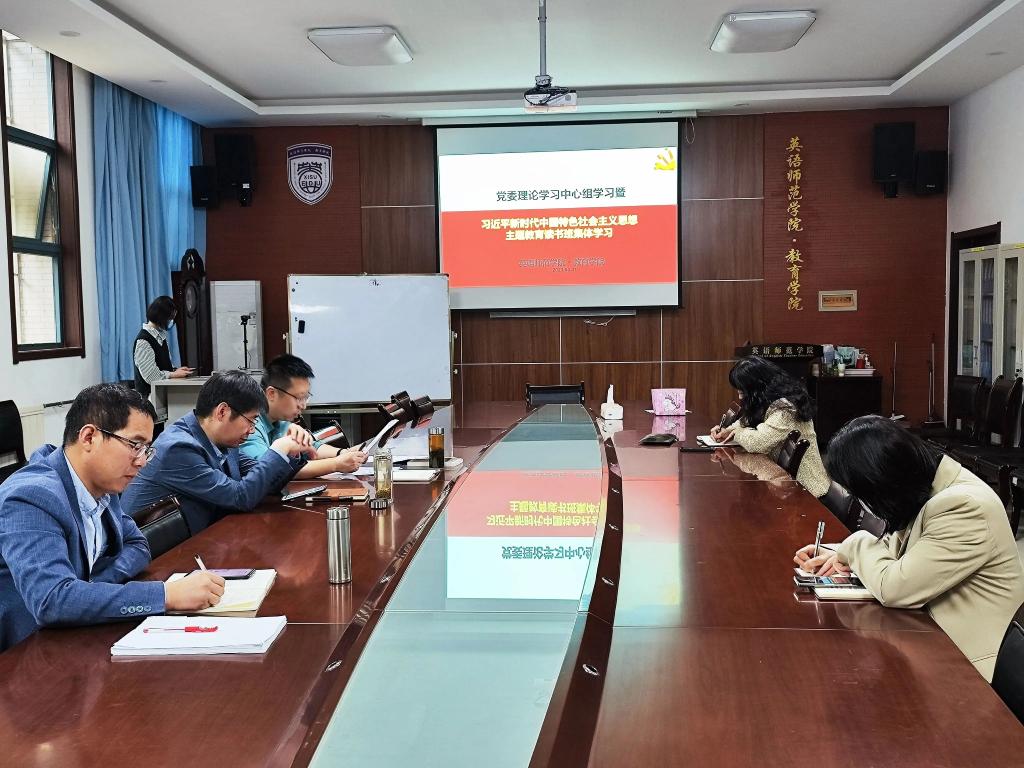 党委理论学习中心组在学院H107会议室进行本学期第5次集体学习,并开展学习贯彻习近平新时代中国特色社会主义思想主题教育读书班集体学习,中心组成员参加学习。党委书记姚玮主持集体学习。
