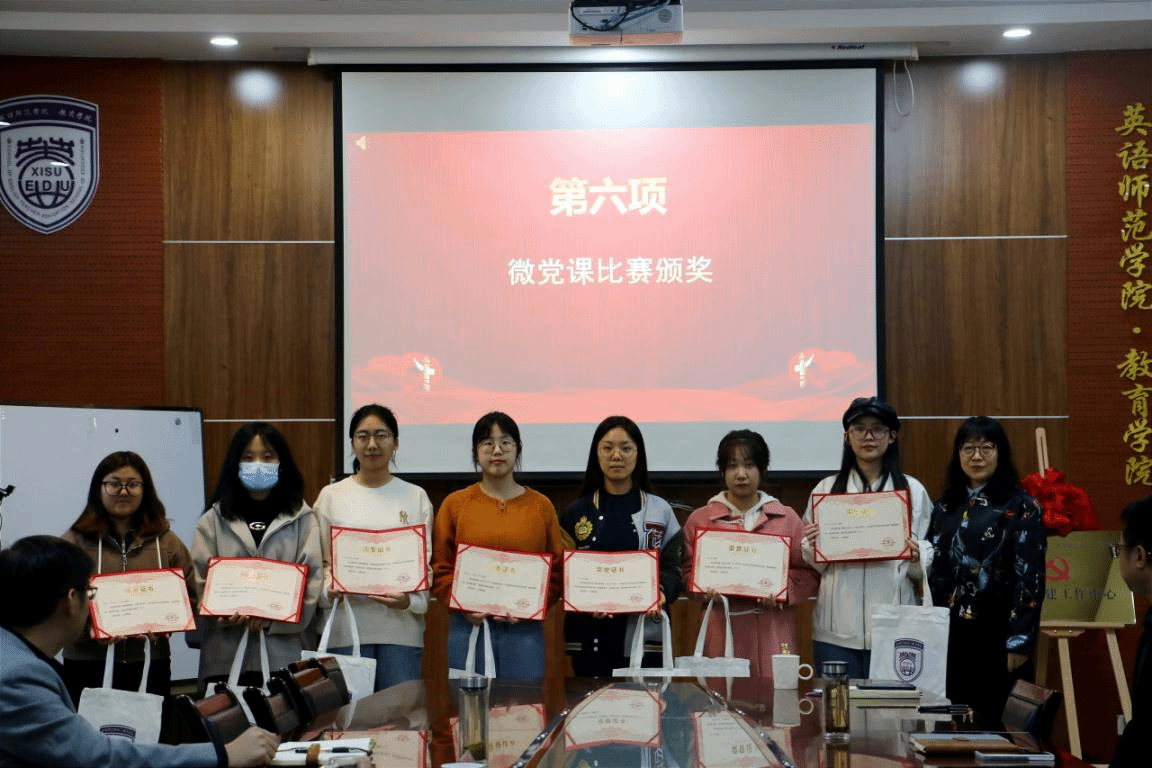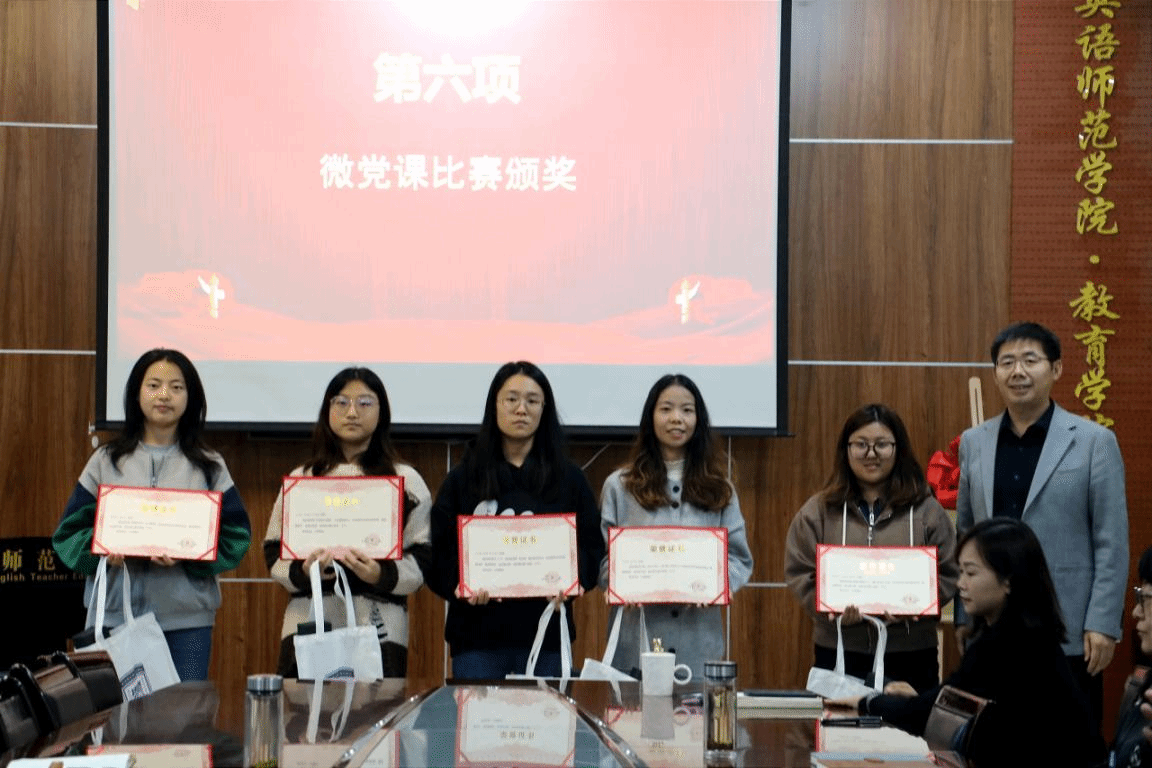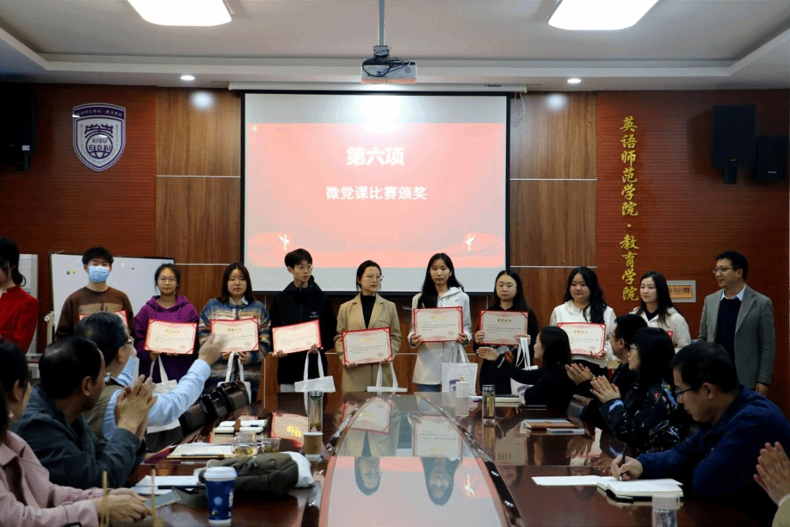 揭牌仪式后,组织开展了“激扬青春梦 奋进新征程”主题微党课比赛颁奖仪式。此次微党课比赛自举办以来,共收到近百个形式多样、内容丰富的参赛作品。经学院初审推荐、作品网络阅读量统计、评审委员会审核评议等环节,共评选出一等奖3项,二等奖5项,三等奖7项,网络最受欢迎微党课9项。王启龙校长等分别为获奖同学颁发证书和奖品。