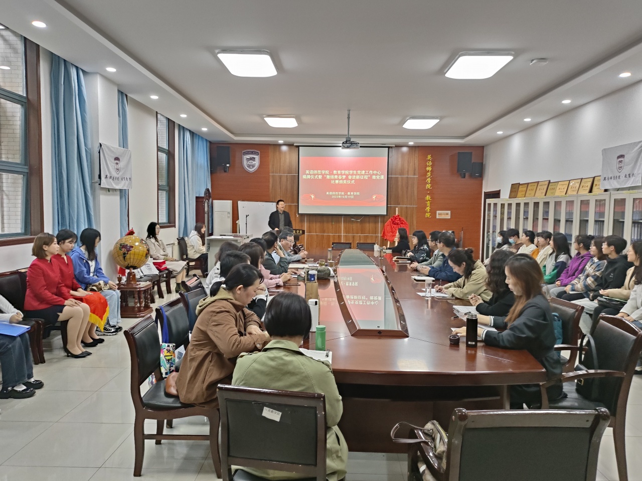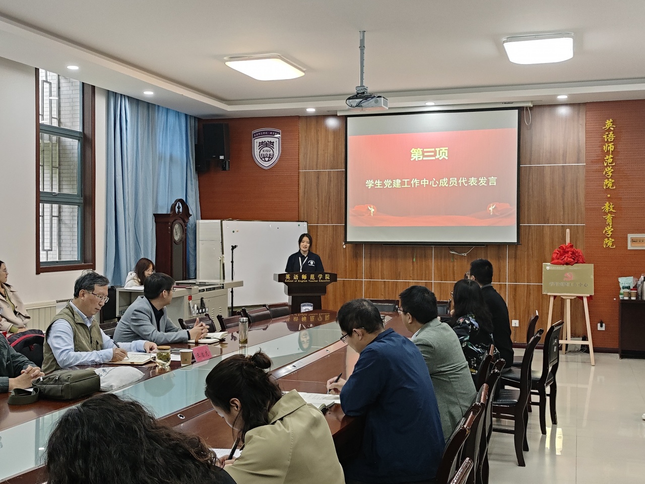 会上,姚玮对学生党建工作中心的前期筹备、组建成立、机构设置以及工作计划等情况作了全面介绍,并指出学生党建工作中心的成立,是学院党委落实党的二十大报告关于加强基层党组织建设的相关要求的重要举措,希望以党建工作中心为载体,进一步规范学院学生党建工作,夯实基层党组织建设,以高质量党建引领英语师范专业人才培养。