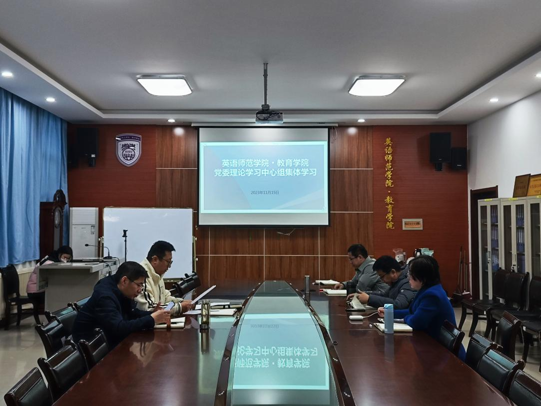 2023年11月15日,学院党委理论学习中心组在H107会议室举行本学期第6次集体学习,中心组全体成员参加学习,集体学习由党委书记姚玮主持。