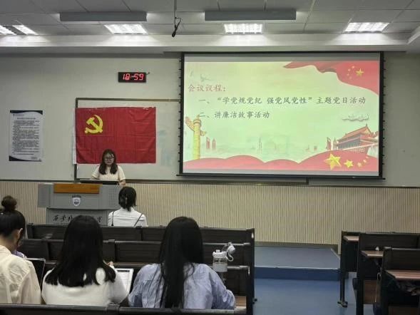 学生第一党支部于2024年5月23日晚19:00在教学楼A106举行了“学党规党纪,强党风党性”主题党日活动。此次活动由白诗勤同志担任主持,支部副书记李婵婵及支部全体党员共同参与,共同学习、交流,深化对党纪党规的理解与把握。