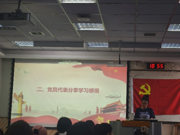 本次会议共四项议程。大会第一项开展廉洁主题组织生活会。首先由高鑫领学《中国共产党廉洁自律准则》,她号召广大学生党员提高思想觉悟,加强党性锻炼,自觉做遵纪守法的模范。接着各党小组组长分别汇报了各党小组的批评与自我批评情况。各党小组成员结合近期表现,对个人思想、学习和生活等方面进行剖析,表明在今后的学习和工作中会以更高的标准要求自己。
