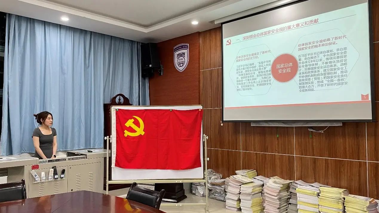 会议第一项,召开国家安全主题教育活动。首先由第三党小组代表领学国家安全相关学习内容。曹佳文领学了《<总体国家安全观学习纲要>解读》,强调《总体国家安全观学习纲要》是我们党历史上第一个被确立为国家安全工作指导思想的重大战略思想,是新时代国家安全工作的根本遵循和行动指南,并从《总体国家安全观学习纲要》出版的背景、意义、框架结构和主要内容方面展开解读。