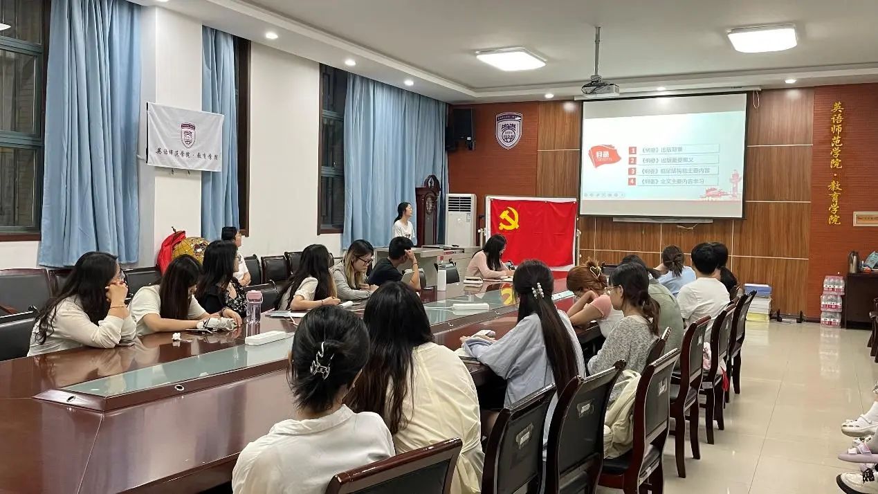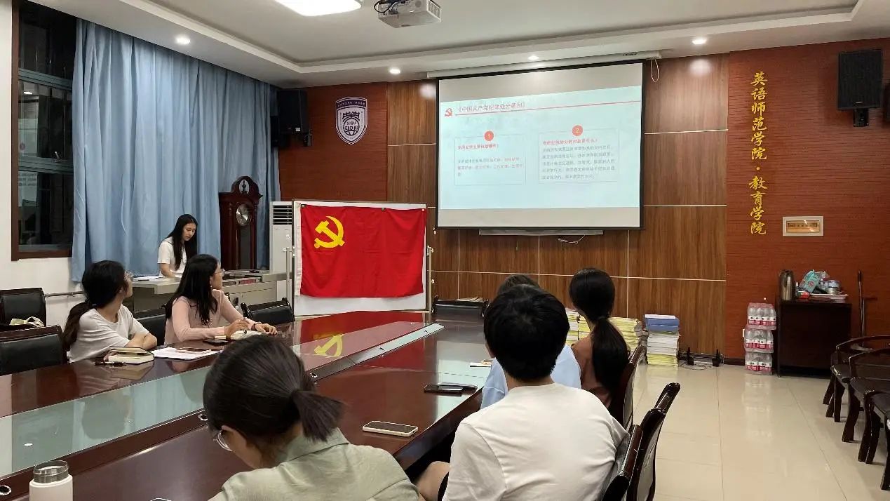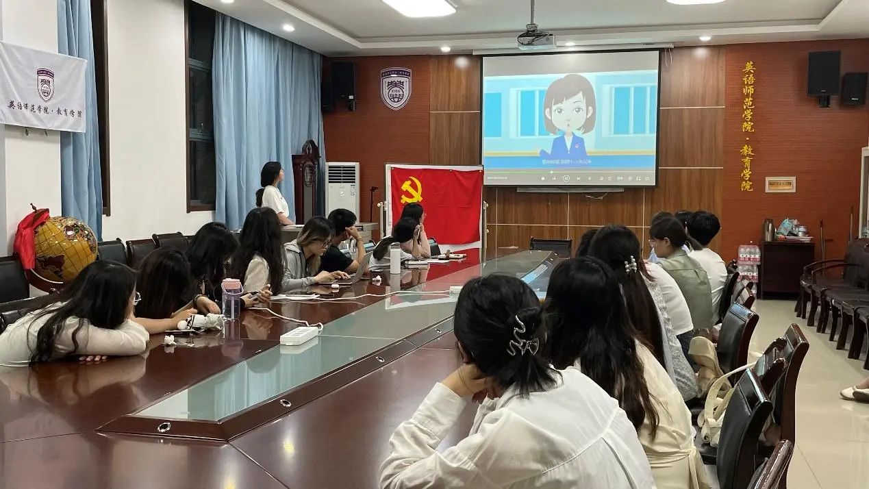 2024年5月27日19:00,英语师范学院·鸭奈飞 学生第三党支部在H107召开国家安全主题教育活动暨“学党规党纪,强党风党性”主题党日活动。会议由支部副书记王婷婷主持,支部书记薛璐及学生第三党支部全体学生党员参会。