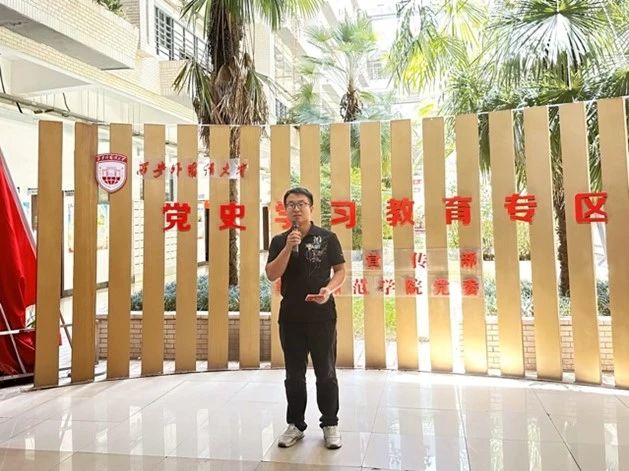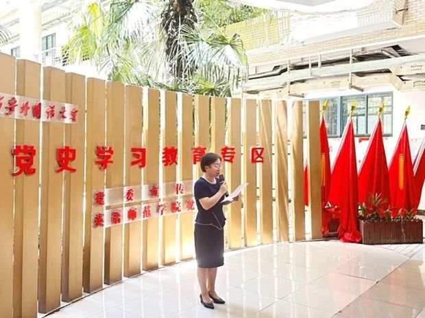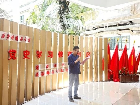 党委书记姚玮在讲话中代表学院党委向全体师生党员致以节日的问候,他指出,值此伟大的中国共产党建党103周年之际,学院党委举行本次“七·一”主题党日活动,是为了回顾百年历程,重温光荣岁月,坚定理想信念,淬炼党性修养。姚书记强调,身为英语师范学院的师生党员,如何践行党在教育领域的初心使命,是党员教育以及未来教师的终身课题。要坚持从习近平总书记关于教育的重要论述中汲取思想力量,全面贯彻党的教育方针,坚持立德树人,深化教育改革,为培养堪当时代大任的一流人才贡献智慧。