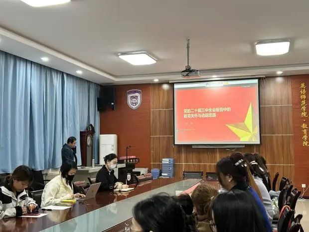 本次党课题为《党的二十届三中全会报告中的教育关怀与选题思路》。冯东深入浅出地讲解了两个核心主题:一是教育内外部关系规律的理解;二是对党的二十届三中全会报告(以下简称报告)中教育相关内容的解读。他强调,在学习党的最新政策和理论时,我们要先明确教育学科的定位和特点,保持问题意识、方法意识、政策意识、对策意识、立场意识以及热点意识。接着,他以政策的本质解读为切入点,从报告文本中筛选出了一系列重要的教育主题,包括育人方式和办学模式的改革、立德树人机制的完善、高等教育布局的优化、高校改革和创新能力的培养、科技人文教育的协同以及职业教育体系的构建等,并对这些主题进行了深入的分析和解读,帮助与会党员更好地理解党的教育方针政策。最后,冯东分享了本次党课的所有资源,包括讲义、参考文献和相关资料,以便党员们在课后能够继续深入学习和研究。