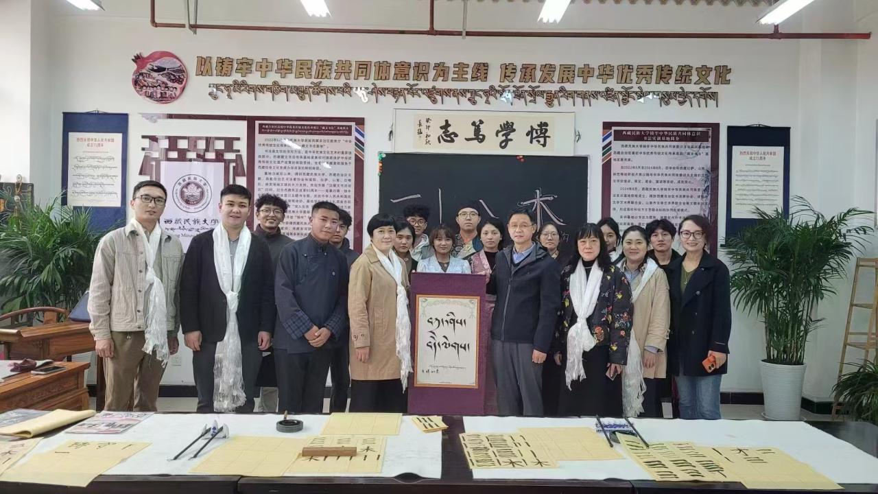 西藏民族大学党委常委、组织部部长陈敦山向调研组一行献了哈达,表达热烈的欢迎。在陈敦山一行陪同下,调研组参观了西藏民族大学校史馆、铸牢中华民族共同体意识研究中心、2011协同创新文化中心和铸牢中华民族共同体意识书法实训基地。