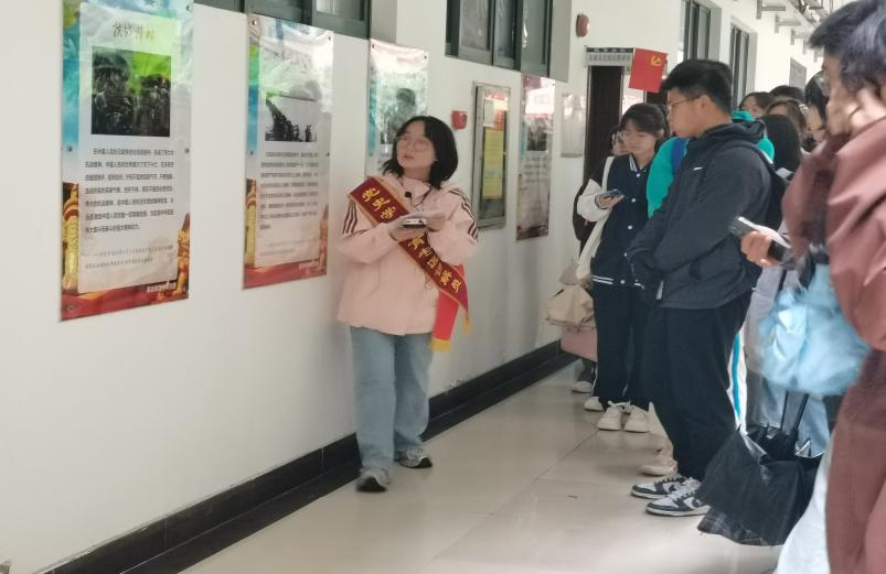 紧接着,讲解员屈思语同学带领参观者们移步到中国共产党人精神谱系板块,通过结合历史事实、优秀事例等对习近平总书记论中国共产党人的精神谱系的进行解读。通过学习,同学们对中国精神有了进一步的了解,表示愿意以他们为榜样不断增强爱党爱国意识,担当起当代青年的责任与使命。